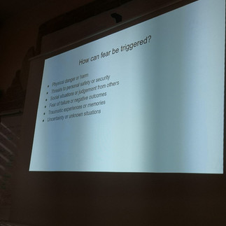 On the fifth day, we dived more deeply into the concept of fear, where we had an open discussion about that. We started off by the theory of fear, followed by the triggers of it, such as threats, physical, emotional violence, fear of failure, traumatic experiences, and uncertainty. Then we talked about how fear is manifested, as in physical or emotional symptoms, and lastly, how we can respond to it.